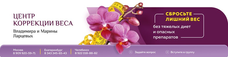 Марафоны снижения веса проходят в Центре коррекции по уникальной запатентованной методике (патент РФ №2270699). Обрести новую фигуру поможет сертифицированный специалист в области эриксоновской терапии в работе с избыточным весом Марина Ларцева.